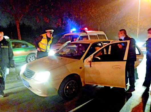 执法人员拦截黑出租。