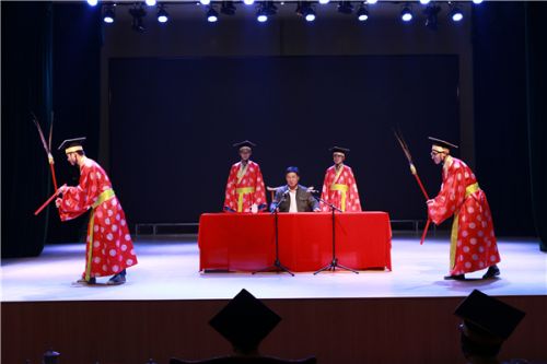 解析古代佾舞。 4月9日上午,山东大学生学而国学会在章丘锦屏山道可道剧场举办国学报告会,特请山东大学儒学高等研究院教授、博士生导师孟祥才作了首场国学报告。来自山东大学、山东师范大学、山东财经大学、齐鲁师范学院、齐鲁理工学院、济南工程学院、山东城市建设学院、山东旅游学院等八所大学的学生近300人参加了报告会。 文博专家彭庆涛在会上作了传统释奠礼的演说报告,并且以现场模拟的形式解析了古代礼仪的各种知识,不仅使学生们有了对传统礼仪的基本认识,同时还大大激发了学生们积极参与的热情。在互动中,学生们穿上古装,在锦屏山传统礼乐博物馆亲自演示古代礼乐的各种角色,学生们在娱乐中得到学习和领悟,体验了一场别开生面的课外国学实践。 山东大学生学而国学会总会长陈阳光说:“我们学而国学会是去年才刚刚成立的,很快的到了省内多所大学同学的积极响应,仅仅半年时间,我们已经成立了8个分会,会员接近2000人,目前还有多所学校的分会还在筹备或酝酿中,我们是一群有抱负、有理想、尚传统文化智慧的学子,我们将来走到社会上,人人都将成为传播和弘扬优秀传统文化的星火。” 山东大学生学而国学会是由山东大学学而国学会发起,省内各大学自愿加盟的崇尚传统文化智慧的学生自发组建的大学生公益社团组织,其宗旨是以中华民族的伟大复兴为己任,弘扬优秀传统文化,汲取传统智慧和魅力,传承国学精髓,重铸道德信仰,普及学子精神。 (责任编辑:章丘大学城网) |