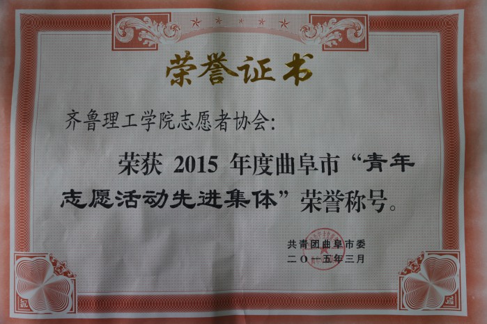 近日,曲阜市对2015年度全市共青团青年志愿者活动先进集体和先进个人进行了表彰。齐鲁理工学院曲阜校区志愿者协会获“青年志愿活动先进集体”荣誉称号;2013级书法专业王鹏、王令泽同学和2013级艺术设计专业邵珊珊同学获“曲阜市青年志愿活动先进个人” 荣誉称号。![]() ![]() ![]() ![]() (责任编辑:章丘大学城网) |