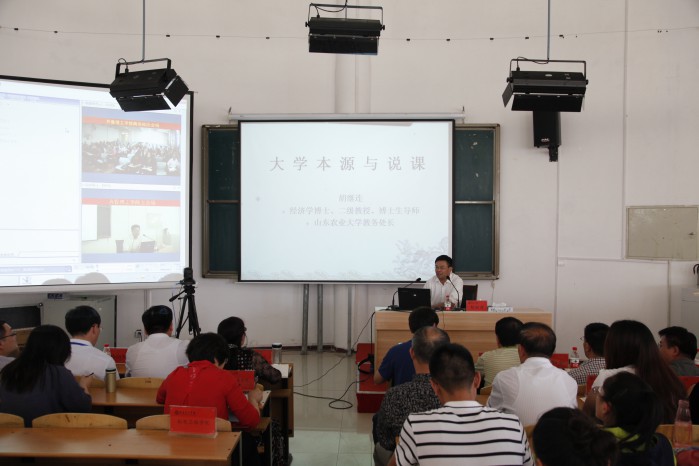 5月18日,我省知名经济管理学专家、博士生导师、山东农业大学教务处处长胡继连教授应邀来到齐鲁理工学院,为学校全体教师作了《大学本源与说课》的专题讲座。院长常翠鸣、副院长张庚灵、宋加金、魏希启、单成娟出席讲座,教务处相关人员和全体教师听取了讲座,曲阜校区也通过视频会议的方式在第二会场听取了讲座。讲座由张庚灵副院长主持。