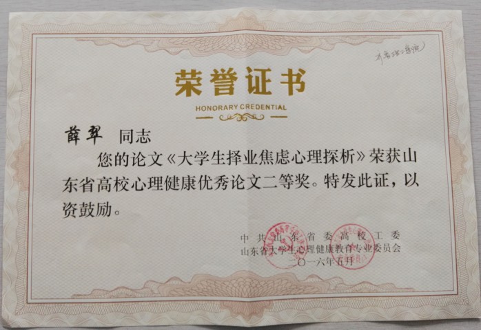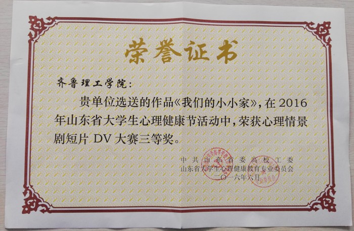 近日,2016年山东省大学生心理健康节落下帷幕。山东省委高校工委、山东省大学生心理健康教育专业委员会对2016年山东省大学生心理健康节优秀组织单位、优秀指导教师及获奖作品进行了表彰。 我校荣获2016年山东省大学生心理健康节大学生朋辈心理辅导技能大赛优秀奖,DV作品《我们的小小家》荣获心理情景剧短片DV大赛三等奖,薛翠老师的论文《大学生择业焦虑心理探析》荣获优秀论文二等奖。 山东省大学生心理节是我省深入贯彻落实党的十八大、十八届三中、四中、五中全会和习近平总书记系列重要讲话精神,积极培育和践行社会主义核心价值观,提升大学生心理健康素质,提高高校心理健康教育工作质量的重要活动之一,至今已举办八届。本届心理健康节以“新体验·筑梦想·促成长”为主题,我校高度重视,认真部署,广泛动员,精心组织,活动形式贴近学生,活动品牌效应显著,活动效果突出,有助于提高我校心理健康教育工作的针对性和实效性,推动了我校大学生心理健康教育事业向前发展。 ![]() ![]() ![]() |