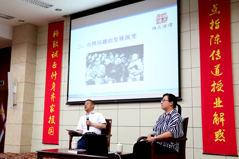 “小时候,乡愁是一枚小小的邮票,……而现在,乡愁是一湾浅浅的海峡,我在这头,大陆在那头。”5月19日晚,随着刘金玲老师深情朗诵的台湾著名诗人余光中的《乡愁》,“国是讲坛”第二讲《台湾问题的由来与去向》拉开了序幕。 此次讲坛由山东省高校教学名师、马克思主义学院宋继和教授担任主讲,教务处刘金玲老师担任辅讲,学校有关部门负责人、参加青年马克思主义者培养工程的学生以及马克思主义学院师生代表近400人聆听了讲座。讲座由马克思主义学院党总支书记王晓梅教授主持。 宋教授和刘老师以访谈问答的形式,就台湾问题的形成、发展演变和未来展望三个问题,进行了精心解读。关于对台湾问题的形成,宋教授指出正是国共决战,大军横扫定大陆,朝战烽烟,美国干涉侵台才造成的历史事实;就台湾问题的发展演变,宋教授以时间为线索,讲述了从武装解放到和平努力,改革开放以来“和平统一、一国两制”方针,“九二共识”与“汪辜会谈”,到“台独”逆流的甚嚣尘上;在台湾问题的未来展望中,宋教授讲述了历届党和政府的英明决策,以及大陆与台湾的当前经济交往,经济、军事等方面的对比,指出了台湾问题的最终解决是大势所趋,民心所向,是任何力量无法阻挡的。 访谈讲述之后,会场又进行了师生问答互动环节,宋教授就若干问题进行了深度解读,师生交流密切,会场气氛热烈。 我校“国是讲坛”直面社会热点,弘扬正能量,是思想政治理论课教学模式改革的有益尝试。在5月20日台湾地区领导人蔡英文宣誓就职前夜,“国是讲坛”举办台湾问题讲座,回应师生广泛关切,使大家对台湾问题有了更为系统的理解,具有很强的现实指导意义。 (责任编辑:章丘大学城网) |