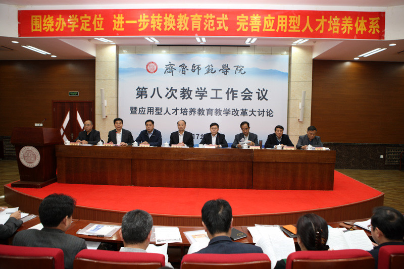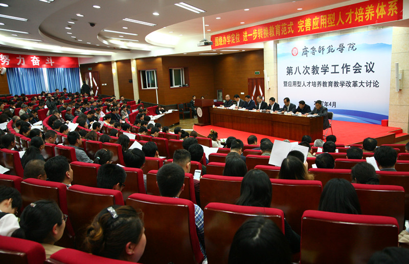 为贯彻落实学校第二次党代会精神,4月18日下午,我校在章丘校区学术报告厅隆重召开了“齐鲁师范学院第八次教学工作会议暨应用型人才培养教育教学改革大讨论”。校领导,处科级干部,正高职称人员,专业负责人,教研室主任,教学秘书、教务员,教师代表,学生代表出席了此次会议。会议由张福建副校长主持。