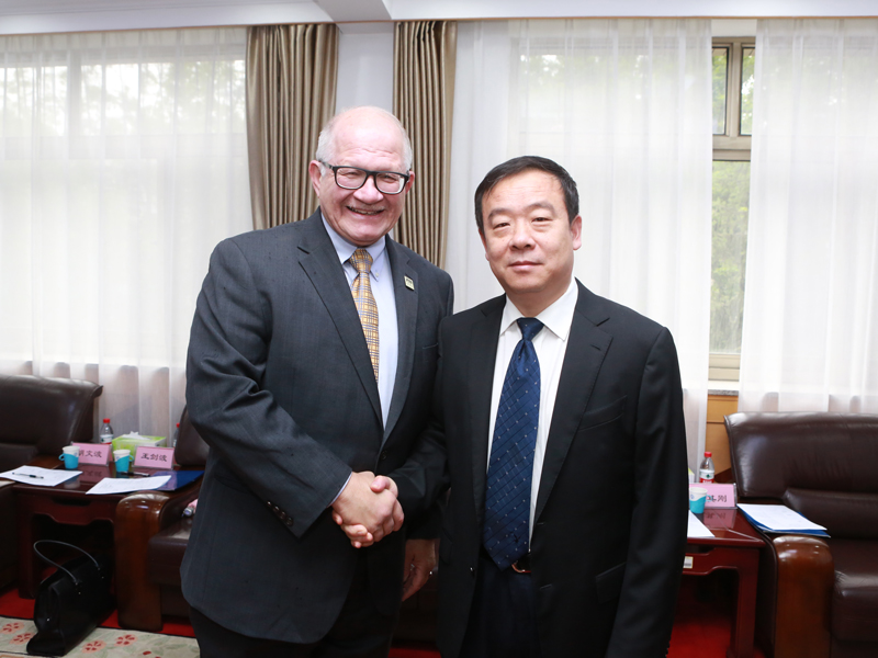5月14日,美国佛罗里达国际大学校长马克.罗森伯格(Mark B. Rosenberg)、副校长卢鹏访问我校。校党委书记王邵军、副校长胡文波会见了来宾。教务处、研究生院、MBA学院、经济学院、外国语学院、管理科学与工程学院、国际经贸学院、国际交流与合作处负责人参加会见。